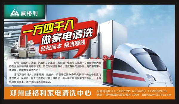 洗多多家電清洗招商加盟中心推出的有家用空調(diào)內(nèi)外機(jī)清洗,車用空調(diào)清洗,油煙機(jī)清洗,飲水機(jī)清洗,電腦清洗,太陽能清洗,洗衣機(jī)清洗,冰箱清洗,中央空調(diào)清洗,各種家電清洗等清洗項(xiàng)目20多個(gè)。這些品類都是投資少,賺錢快,低風(fēng)險(xiǎn)高收益的特別適合創(chuàng)業(yè)的好項(xiàng)目。、家電清洗加盟廠家,家電清洗設(shè)備生產(chǎn)廠家,家電清洗劑,家電清洗設(shè)備