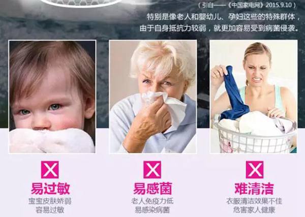 這些滋生的細(xì)菌、真菌不但會(huì)污染衣物,還會(huì)通過衣服二次污染,對(duì)婦女和小孩危害*。