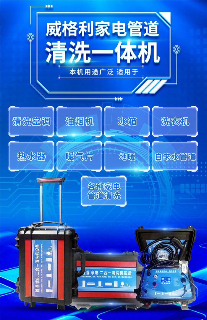 現(xiàn)在要想干家電清洗,只需要花3200塊錢(qián)買(mǎi)臺(tái)威格利*能家電清洗機(jī)就可以開(kāi)工干活。這臺(tái)*能家電清洗機(jī)具有高溫高壓、冷水高壓、熱水、熱蒸汽、臭氧消毒以及脈沖清洗等功能。可以輕松的清洗各種家電,比如空調(diào)、油煙機(jī)、冰箱、洗衣機(jī)、熱水器等。
